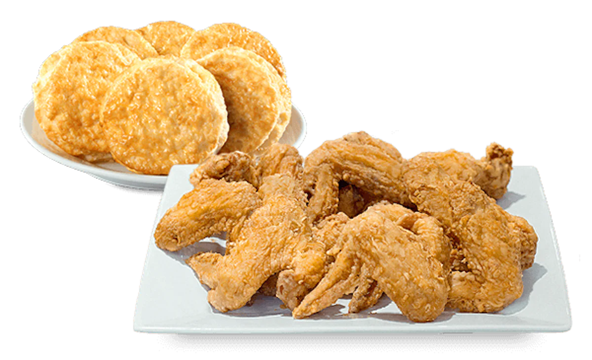 Juicy, golden-fried wings served up with a made-from-scratch biscuit.
